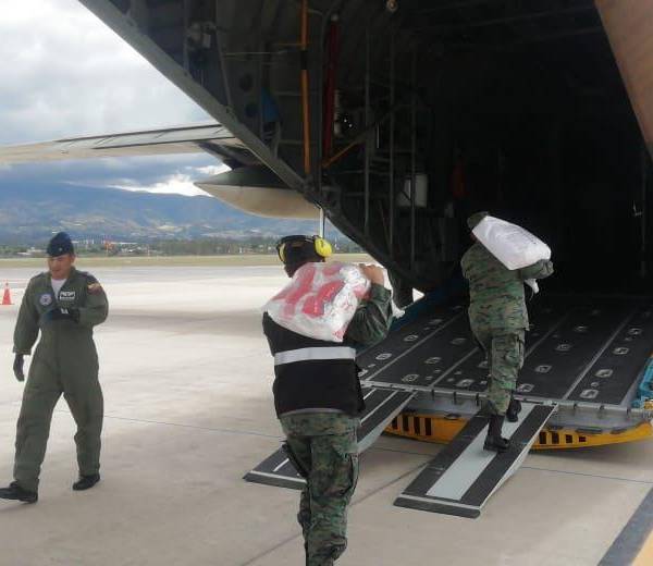 Las Fuerzas Armadas del Ecuador se encuentran ayudan a algunos comerciantes en el traslado de productos de primera necesidad, mediante vuelos logísticos.