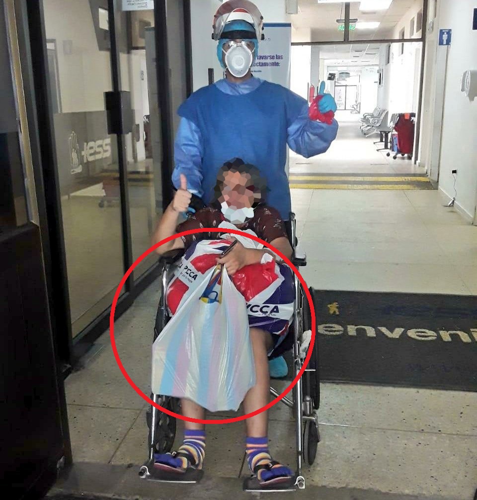 Es más, el IESS, en sus redes sociales, coloca imágenes de pacientes COVID-19 dados de alta, que salen con bolsas y fundas, que podrían (o no) ser sus pertenencias, pero se retiran del centro médico con ellas. Esta es una toma difundida hoy de un alta del Hospital General de Milagro.