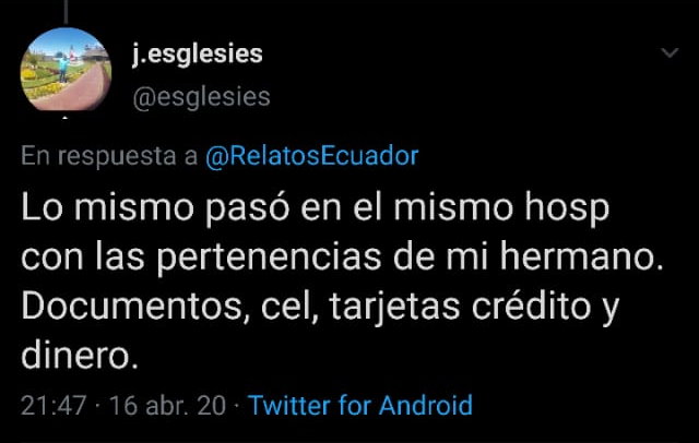 Ya no hablamos de cuerpos perdidos, de cadáveres que no se pueden encontrar en medio de un mar de otros cadáveres. Ahora hablamos de robo, de hurto de pertenencias y de dinero a personas que han fallecido en hospitales del sistema público de salud. En el caso de Augusto, todo ocurrió en el Hospital de Los Ceibos del Instituto Ecuatoriano de Seguridad Social (IESS).