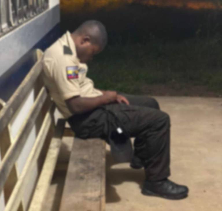 Mientras que en otra foto, se observa a un presunto agente sentado en una banca y dormido con la cabeza agachada.