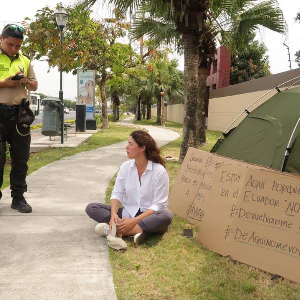 Fiallos tomó la determinación de acampar en los exteriores de la vivienda de su exesposo hasta que su pedido sea escuchado por las autoridades.