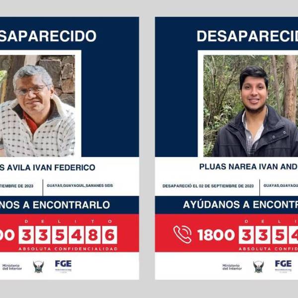 "Si conoces sobre la ubicación de Iván Federico Plúas Ávila e Iván Andrés Plúas Narea, comunícate de inmediato con las autoridades", indicó el Ministerio Público en su cuenta de X, compartiendo fotografías del padre e hijo para su reconocimiento.