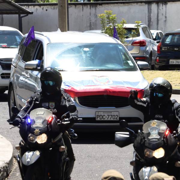 El féretro de Villavicencio partió, dentro de un vehículo fúnebre que llevaba encima la bandera de Ecuador, hacia a una funeraria del norte de la capital, resguardado por varios carros y policías motorizados.