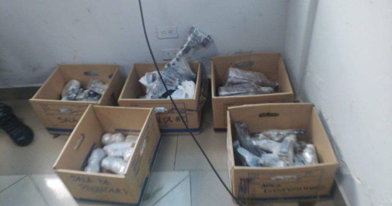 La Fiscalía General del Estado informó, este viernes 4 de agosto de 2023, que siguiendo con la inspección de pabellones en la Penitenciaría del Litoral, los uniformados de la Policía Nacional y de las Fuerzas Armadas encontraron fusiles, bombas, granadas, explosivos, dinero en efectivo y droga al interior del SNAI.