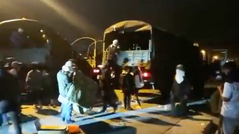 En videos difundidos en redes sociales se observa a moradores del sector atacando los vehículos con piedras. "¡Malditos! ¡Vamos gente!", dice un sujeto. En otra grabación, los protestantes se suben a los autos de los militares y los obligan a bajar. “Esto es para que sepan que con San Antonio no se meten”, indica un hombre.