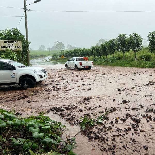 Un usuario de X reportó que en la carretera que conecta el sector Bellavista con Los Gemelos hubo un fuerte congestionamiento vehicular. Los autos cruzaban lentamente la calle que parecía un río por el agua acumulada.