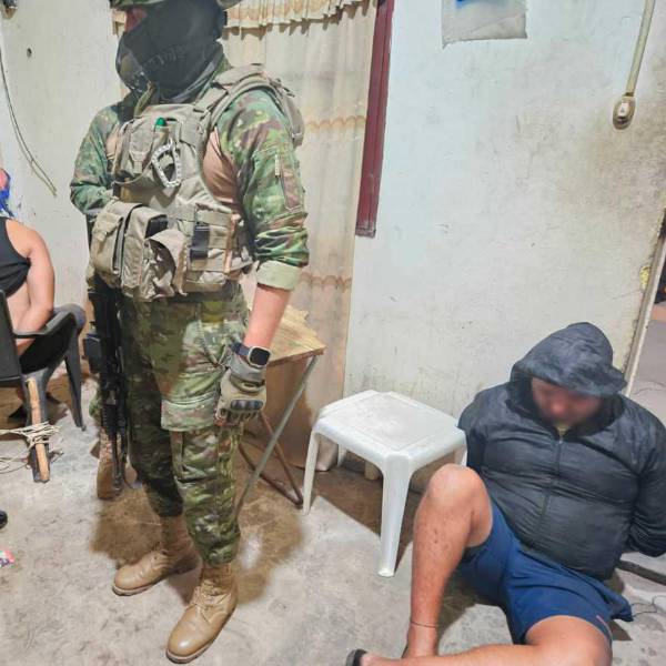 "Duro golpe a la organización terrorista Los Lobos en la frontera sur", escribieron las Fuerzas Armadas en su cuenta de la red social X antes de apuntar que realizaron un allanamiento en el cantón Huaquillas.