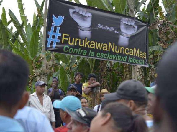 Exobreros acusan a Furukawa, considerada la principal productora de abacá en Ecuador, de violar derechos humanos y obligar a trabajar en condiciones infrahumanas y sin ningún tipo de servicio básico a sus empleados en las plantaciones, donde laboraban familias completas, incluidos niños.