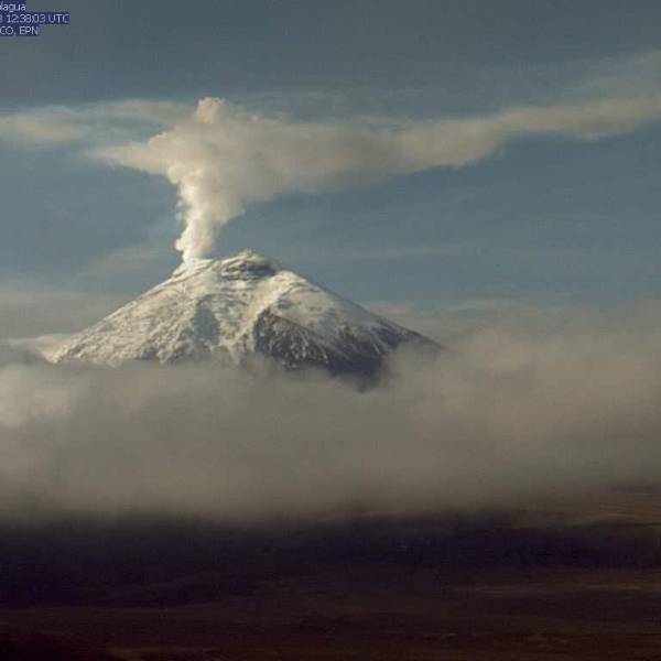 La actividad del Cotopaxi se incrementó desde finales de octubre, cuando comenzó a emitir gases y vapor de agua, acompañados de ceniza.