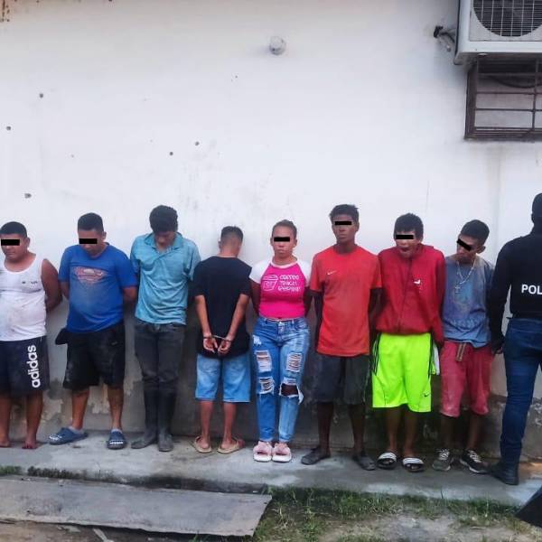 Además, entre los detenidos estaban dos policías en servicio activo. Todos fueron aprehendidos en un operativo ejecutado por las Fuerzas Armadas, cuando se encontraban en una reunión social al interior de una vivienda, la madrugada del miércoles 12 de junio en el sector de “La Chiquita”.