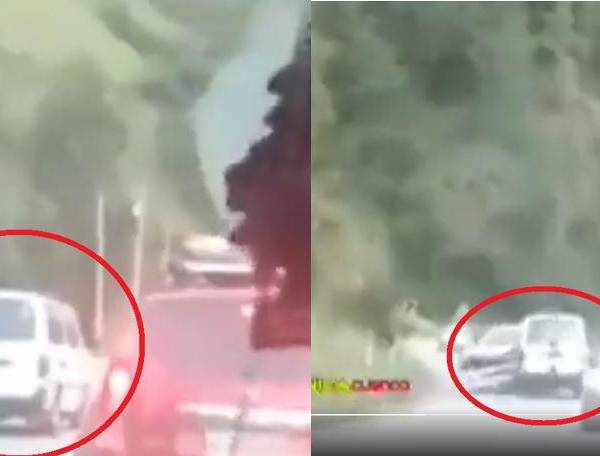 Con un teléfono celular y desde otro vehículo se logró captar los instantes previos de un accidente de tránsito en la vía Loja-Cuenca, sector San Lucas.