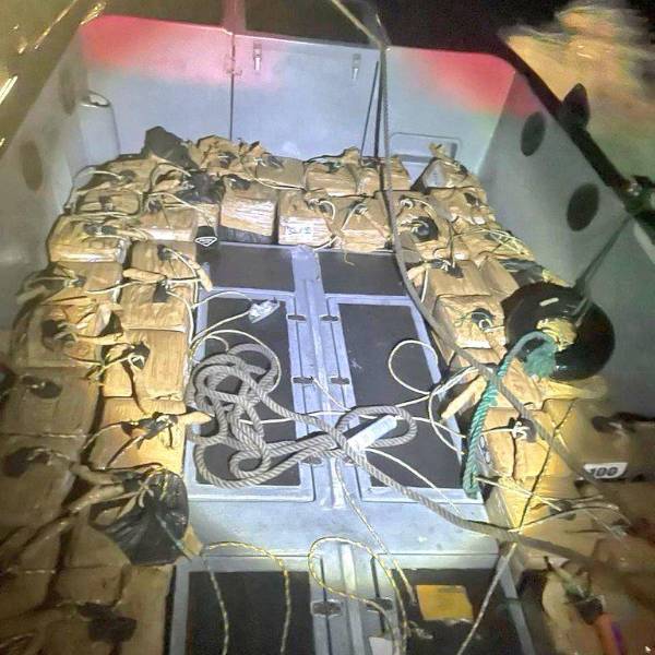 En una operación conjunta entre la Policía Nacional y la Armada del Ecuador, se logró la interdicción de una embarcación que transportaba aproximadamente 100 bultos de sustancias sujeta a fiscalización, dentro del mar territorial ecuatoriano.