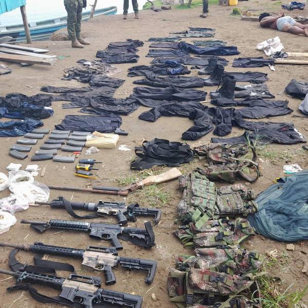 En el marco del estado de excepción por grave conmoción interna en Ecuador, uniformados de las Fuerzas Armadas (FF.AA.) localizaron una base guerrillera en Esmeraldas.