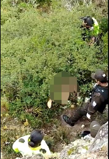 La víctima fue hallada por las autoridades en el fondo de una pendiente. Bomberos y policías trabajaron en la extracción del cuerpo que estaba completamente desnudo.