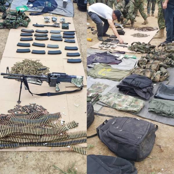En el agujero se encontraron una ametralladora naval, un cierre y porta cierre de ametralladora, seis granadas de mano tipo limón, 997 municiones del calibre 5,56 milímetros, 827 del calibre 7,62 milímetros y 443 municiones del calibre 8 milímetros, además de 21 alimentadoras de fusil M16.