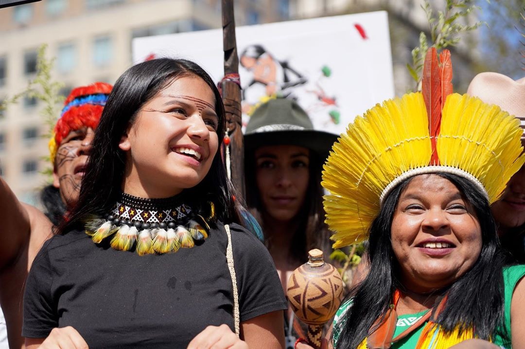 La ecuatoriana se unió a cientos de jóvenes que en septiembre se tomaron espacios de la ciudad de Nueva York para exigir a los gobiernos acciones para combatir el cambio climático. En su pancarta se leía el mensaje "sangre indígena, ni una sola gota más".