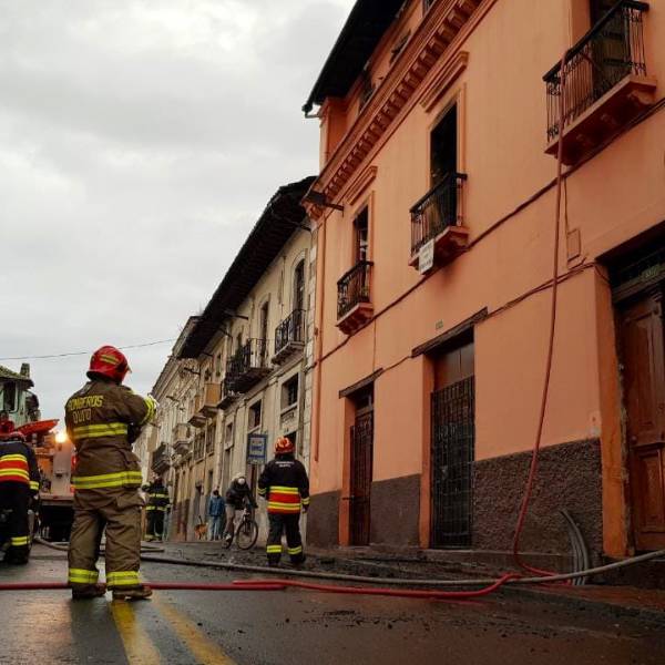AHORA Personal de #BomberosQuito realizan labores de combate y extinción para controlar un incendio estructural ocurrido en las calles Ambato y Guayaquil, sector Centro Histórico. #SalvamosVidaspic.twitter.com/psTmF6i1Xs
