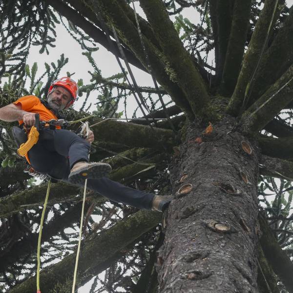 El italiano Andrea Maroè, especialista en escalar árboles gigantes, trepó una araucaria de la Plaza de la Independencia de Quito, el pasado lunes 13 de febrero, en una acción para dar inicio a un proyecto de conservación y recuperación de árboles patrimoniales de la capital de Ecuador.