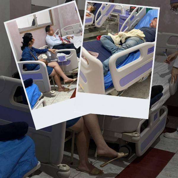 En redes sociales se difundieron varias fotografías en las que se observa a los funcionarios, entre ellos dos concejales, en camas del hospital y con suero.