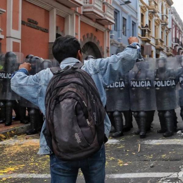 Las movilizaciones en esta jornada de paro nacional contra el presidente ecuatoriano acabó en un enfrentamiento en el centro de la capital entre manifestantes y agentes de Policía, que recurrió a los gases lacrimógenos para dispersar a los participantes.