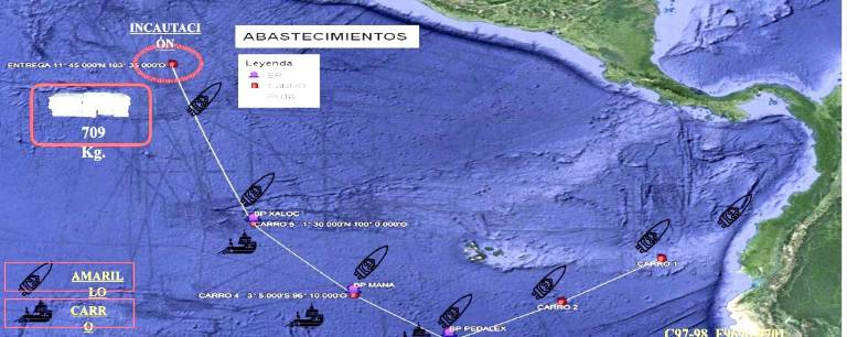 Los expertos identificaron el geoposicionamiento de las embarcaciones que abastecieron de combustibles y logística a las narcolanchas, explicaron fuentes cercanas a la investigación. Además, comentaron que quedaron registros de tripulantes de una nave abastecedora que fueron dejados a su suerte, a la deriva en el mar, y se supone que fallecieron.