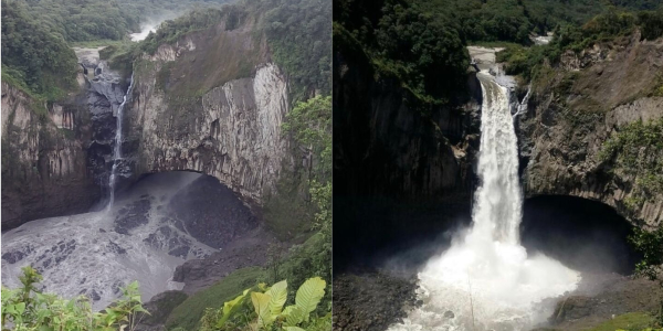 Varios videos empezaron a circular desde este domingo en redes sociales, en los que se muestra a la turística cascada ubicada en la Reserva de Biosfera de Sumaco, sin agua. Uno muestra incluso el momento de la implosión.