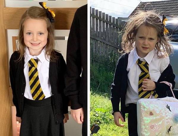 La madre de la pequeña, Jillian Falconer, compartió ayer en Facebook uno de los inicios del añor escolar más divertido. Una foto del antes y después del primer día de escuela de su hija se convirtió en un fenómeno viral.