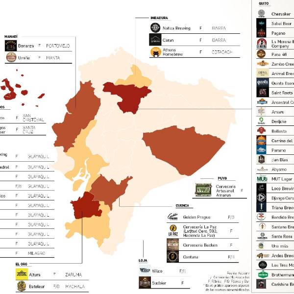 El presidente del gremio Asocerv, José Pinos, explica que de este número de empresas, están asociadas al menos unas 45 cervecerías de Quito, Cuenca, Guayaquil, Loja, Galápagos, Puyo, Portoviejo y Cotacachi, con registros de capacidad de producción que van desde los 200 hasta los 30.000 litros al mes.