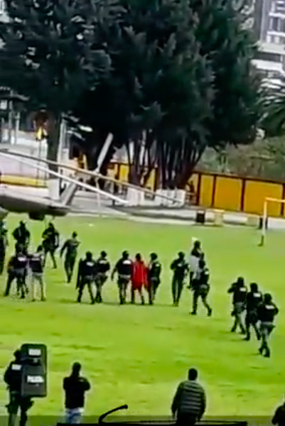 En redes sociales circularon videos del momento en que el presidente de la Conaie fue trasladado desde un sector de Quito hacia Latacunga en helicóptero, en medio de un fuerte resguardo policial y militar.