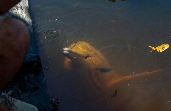 También cuenta con un mayor número de vértebras que le da mayor facilidad para mover entre las raíces y vegetación acuática un cuerpo que puede medir hasta 2,8 metros de longitud y pesar 280 kilos.