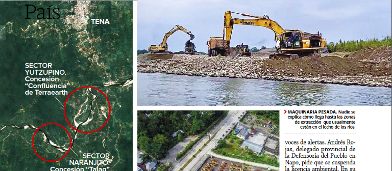Después de provocar daños ambientales en el cantón Arosemena Tola, y recibir la suspensión por parte de la autoridad ambiental, la empresa china Terraearth recibió una nueva licencia para operar el proyecto Tena. La firma niega estar apoyando a la minería ilegal, y asegura que hay una campaña en su contra.