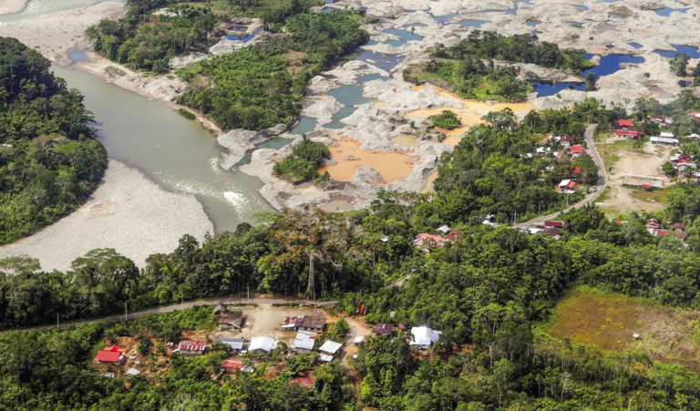Antes la zona era un punto turístico. Ahora, la devastación es provocada por la minería ilegal que tiene redes de apoyo a todo nivel, desde autoridades locales hasta funcionarios públicos, según coinciden expertos y representantes de organizaciones ciudadanas y ambientalistas.