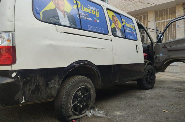 La furgoneta afectada, que tiene en sus ventanas publicidad del político, estaba parqueada en la tercera etapa de la ciudadela Los Tamarindos.