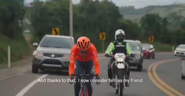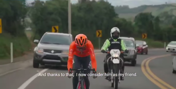 En el video, Carapaz expresa que está muy agradecido porque “Luis es muy buena persona, no solo me ayuda en la parte de protección y eso lo valoro mucho”.
