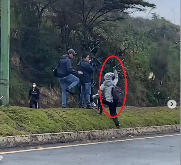 "Nos amenazan y tiran piedras", alertó la reportera de Ecuavisa, Andrea Báez, quien estaba en el sector de San Miguel del Común- Panamericana Norte, en Quito, informando los incidentes de la octava jornada de manifestaciones.