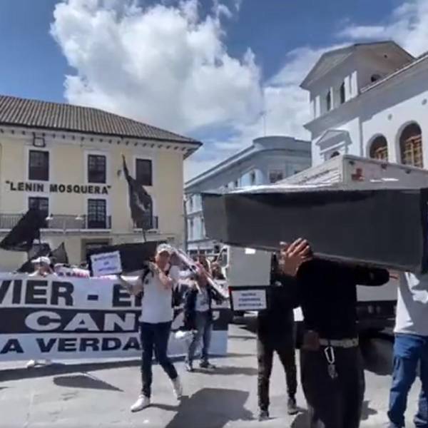 La marcha de los "ataúdes vacíos", llegó este lunes a las afueras del palacio de Gobierno, en Quito, para exigir investigaciones en diversos casos de desaparecidos, entre ellos el del equipo de prensa del diario El Comercio, asesinados por disidentes de las Fuerzas Armadas Revolucionarias de Colombia (FARC).