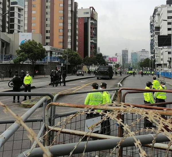 Situada en una de las principales avenidas de Quito, la sede del Consejo Nacional Electoral (CNE) se encuentra acordonada y en los últimos días el blindaje se ha intensificado con vallas entrecruzadas y concertinas para impedir cualquier intento de asalto.