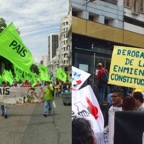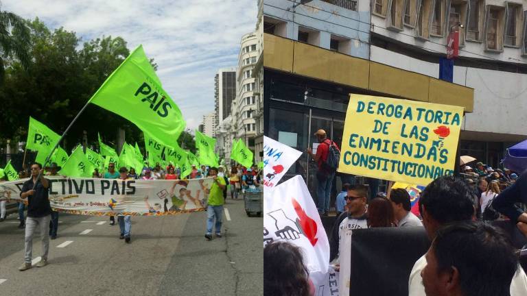En Guayaquil y Quito se cumplen varias marchas por el Día del Trabajo organizadas por grupos a favor y en contra del régimen.
