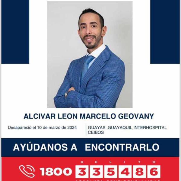 Se trata de Marcelo Geovanny Alcívar León, quien fue visto por última vez el domingo 10 de marzo del 2024 en el sector Los Ceibos de Guayaquil.