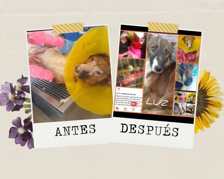 Un caso similar es el de ‘Luz’, que también fue quemada con agua hirviendo hace cuatro años. Presentaba quemaduras en la cara y partes de su cuerpo. Esto provocó que la perrita desarrolle miedo hacia las personas.