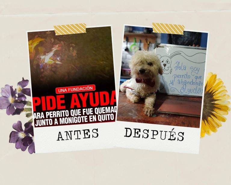 Era 30 de diciembre del 2021, cuando todos alistaban los preparativos para el festejo del Fin de Año. Sin embargo, un hecho conmocionó Quito. Un perrito fue encontrado desorientado y envuelto en llamas al lado de los restos de un monigote en el sector de Alangasí.