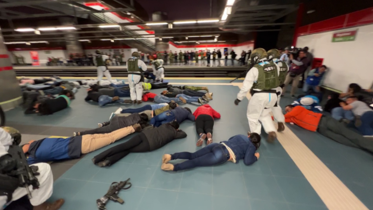 Un simulacro de amenaza terrorista con armas químicas se llevó a cabo en el Metro de Quito, este jueves 3 agosto de 2023.