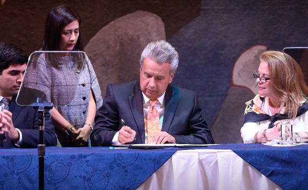 "Este es un día muy importante para el país (...) un día por la libertad", dijo Moreno en un acto en la Capilla del Hombre, escenario artístico que recoge la obra del famoso pintor ecuatoriano Oswaldo Guayasamín y donde firmó la declaración.