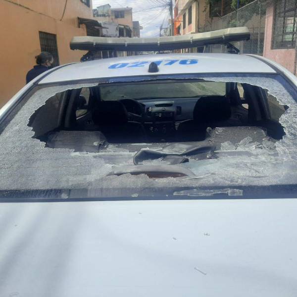 La Policía Nacional denunció la tarde de este viernes 17 de junio de 2022 un nuevo caso de destrucción de patrulleros de la institución por parte de personas que participaban de las protestas, en Quito.