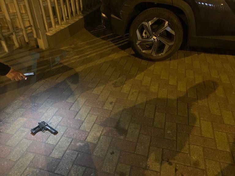 Al pie del vehículo del fiscal, parqueado en las instalaciones de la Unidad Judicial Valdivia, al sur de la ciudad, fue hallado un objeto con similares características a un arma de fuego.