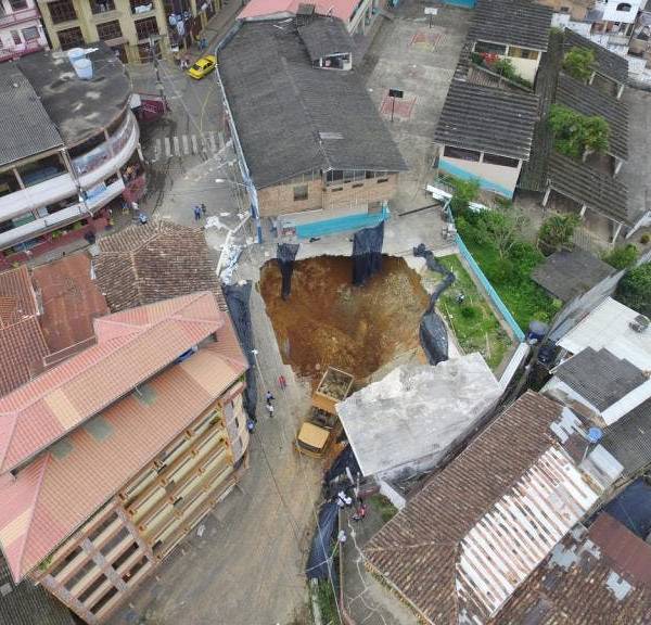 Según estudios de la Secretaria de Gestión de Riesgos, existe un sinnúmero de galerías en el sub suelo del centro histórico de esta localidad. La distancia entre el hundimiento y las viviendas ubicadas en el centro histórico se reduce, causando entre los residentes el temor de perder sus viviendas.