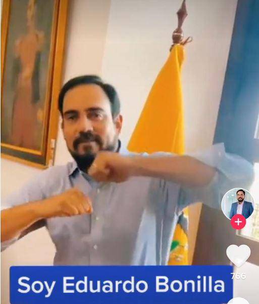“Soy Eduardo Bonilla, 41 años, casado y tres hijas. Comunicador-Publicista, Economista y ahora Secretario de Comunicación”, fueron los mensajes desplegados, al son de una popular canción de la red social Tiktok.
