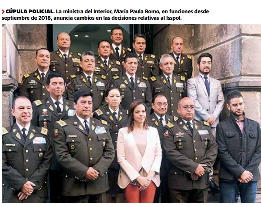 Por cada dos contribuyentes en servicio activo hay un pasivo (en retiro). Los fondos de cesantía tienen un manejo independiente, administrado por un fondo al que los policías aportan durante sus años de servicio activo, al cual se suma una contribución gubernamental. Según la ministra del Interior, María Paula Romo, “A través de mi delegado (en el directorio del Isspol) insistimos en la necesidad de hacer estas revisiones.