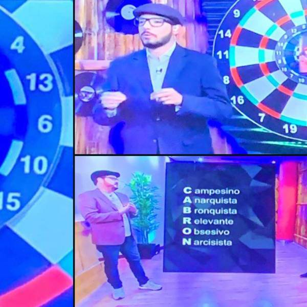 Mediante un acróstico, los presentadores pretendieron realizar una descripción de Iza. No obstante, mientras se completaba la frase con cada letra, se colocaban dardos en fotografía de Iza, específicamente cerca de su rostro.