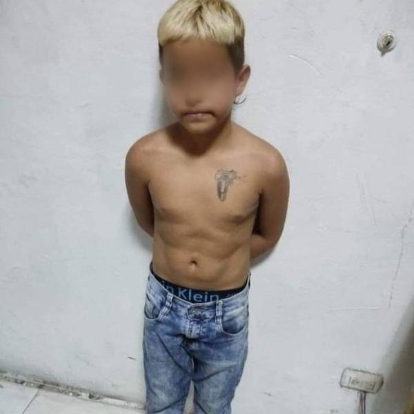 También circuló una foto en el que se ve al menor, supuestamente detenido y sin camisa, con un tatuaje en su pecho que simula una ‘mini subametralladora’.